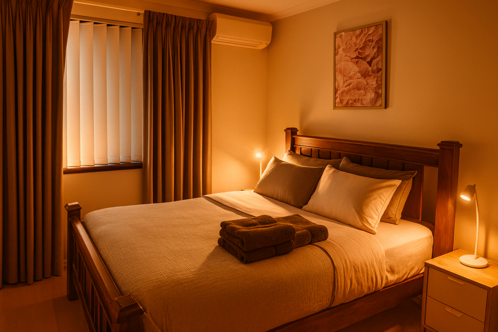 The furnished and air-conditioned ground floor apartment offers spacious lounge, full kitchen and two bedrooms. Bedroom ONE has a comfortable Queen bed and Bedroom Two has a King Single Bed (bed linen and towels included)